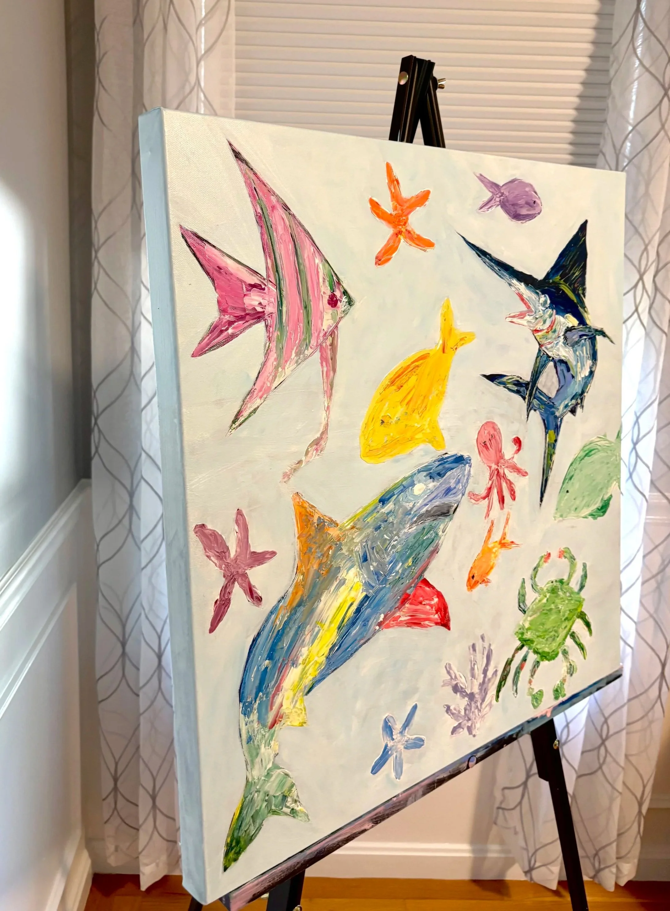 Pink skies at night, Sailor’s Delight! This 20×20 Canvas transports you to a Cape Cod summertime sunset. A touch of texture is added with beach roses and hydrangeas to bring this canvas to life.