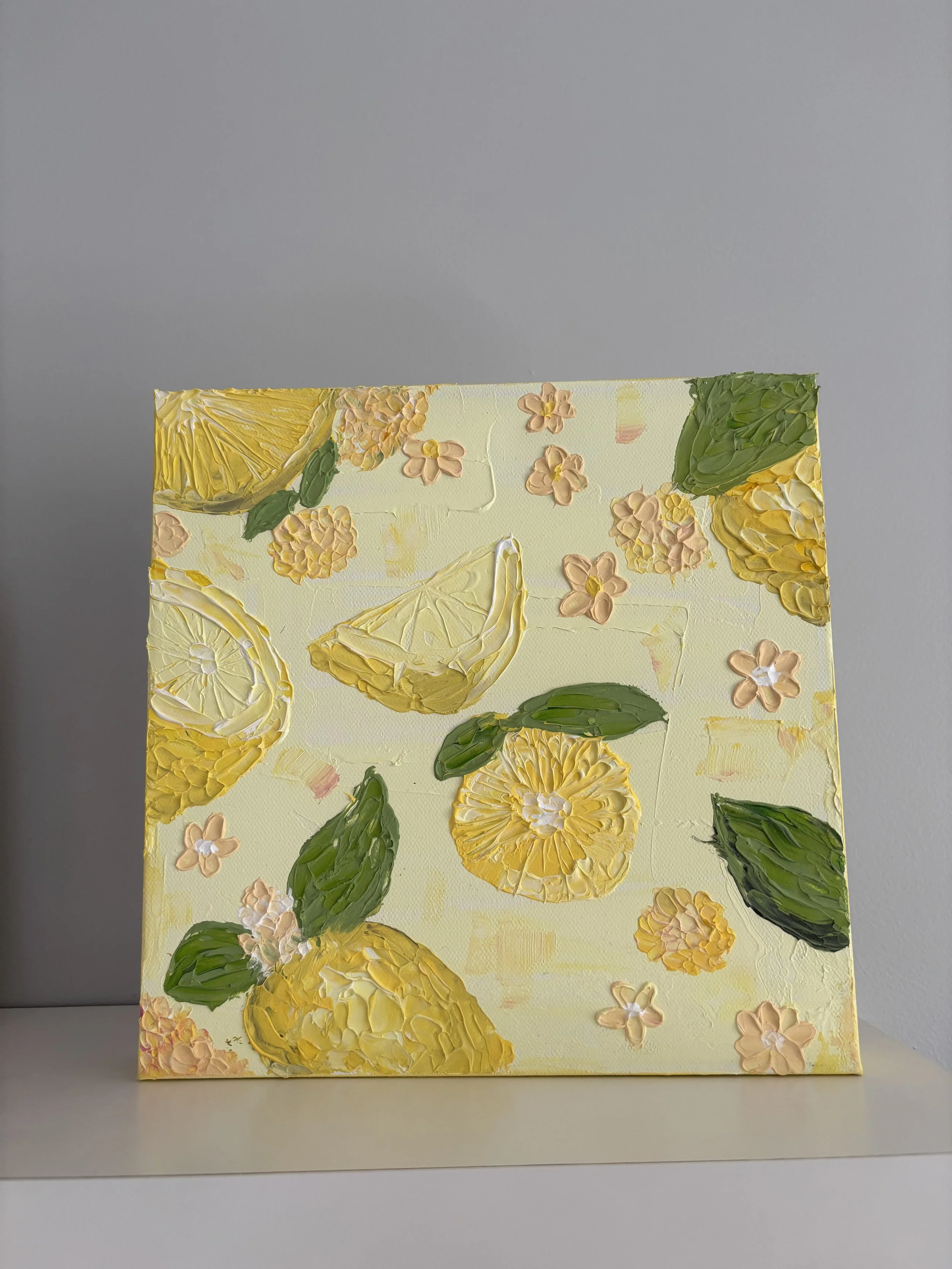 This youthful painting is filled with pinks and purple flowers and petals, evoking a sense of girlhood.